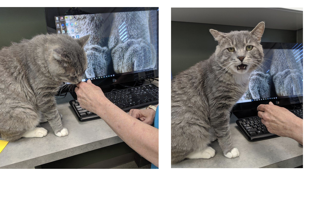 Sometimes, you will see a cat with its mouth open, lips parted and upper lip raised, giving the appearance of a grimace or grin. This is known as a Flehmen response and allows the cat to draw chemicals into the VNO.